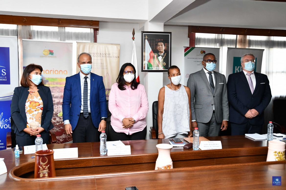 Une Convention de partenariat entre le Ministère de l’Artisanat et des Métiers, le Projet FIHARIANA, la Direction Générale des Impôts, la CNaPS et la BNI Madagascar a été signée aujourd’hui 14 janvier 2022 au Ministère de l’Artisanat des Métiers à 67ha.