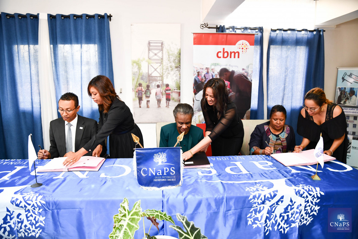 En partenariat avec « LE GLOBAL DISABILITY INCLUSION » et « la SALFA », une cérémonie de signature de convention s’est tenue le 31 mars 2023 au bureau de la CNaPS 67ha.