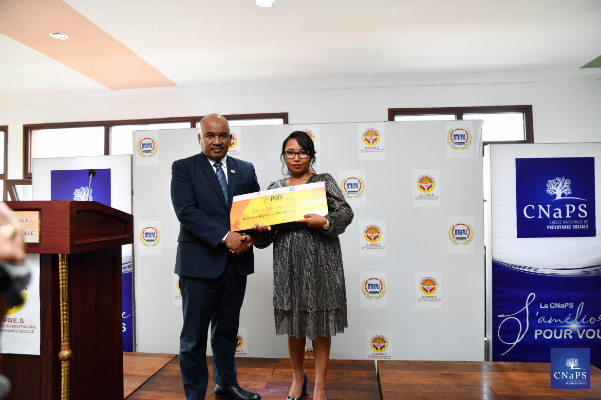 - Madame Lira Mejatiana RAVALISON de Madagascar, qui a obtenu la deuxième place, sur le thème « La psychologie des adhérents face à la Sécurité Sociale » et a gagné 2 500 000 FCFA.
