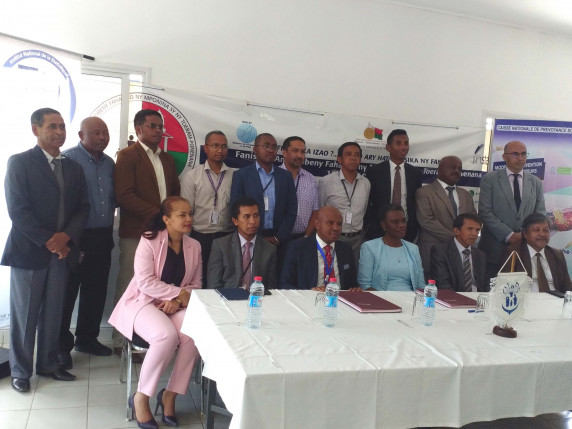 CAPTION DE L'IMAGE Signature de convention de partenariat entre CNaPS , SALFA et CBM (GLOBAL DISABILITY INCLUSION)